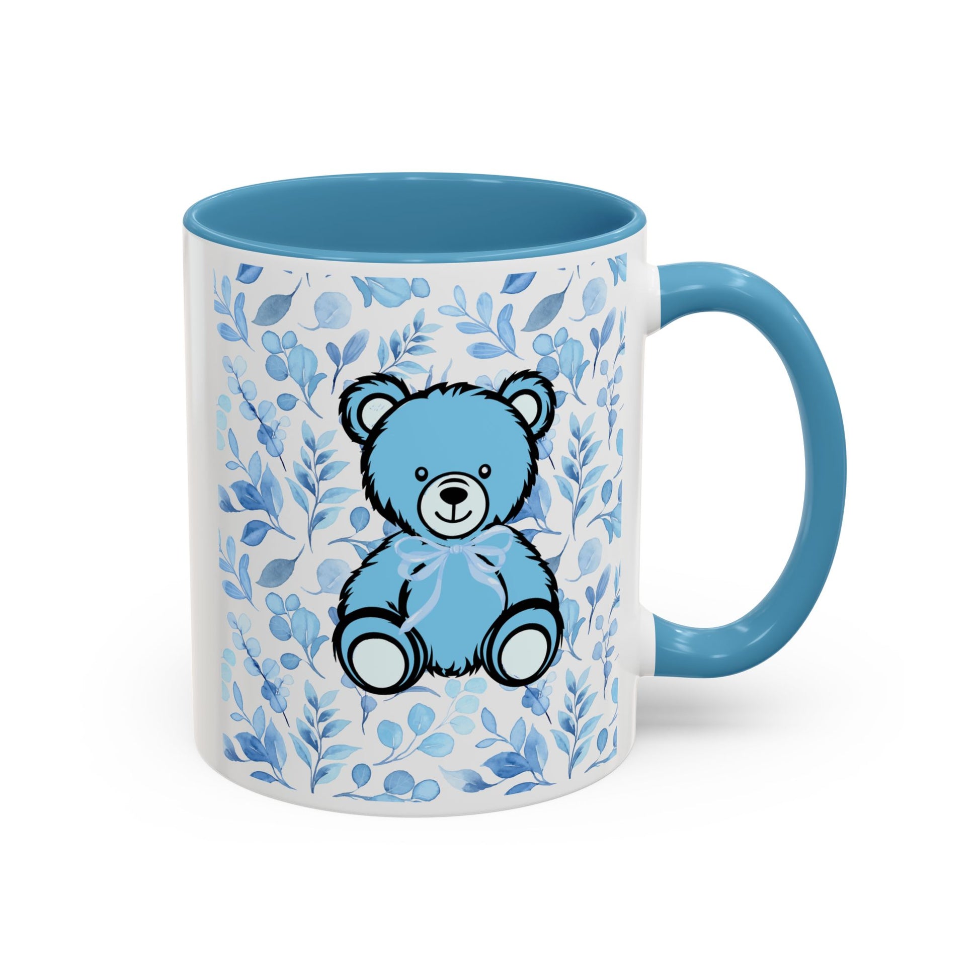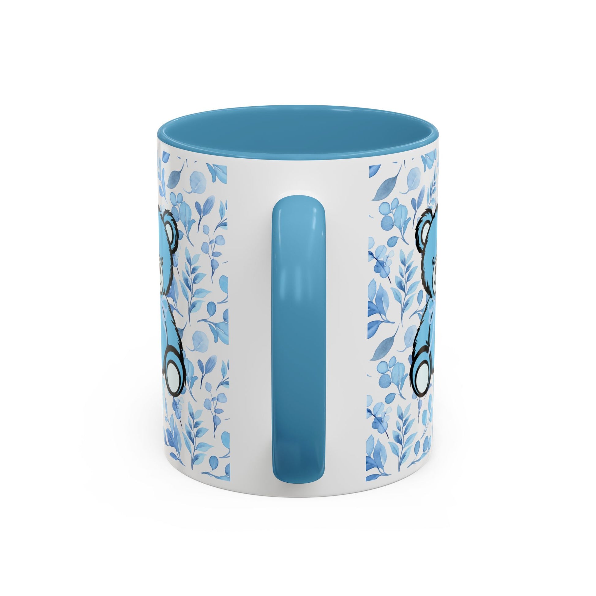 Coffee Mug - Blue Coquette Teddy Bear with Floral Background and Light Blue Interior